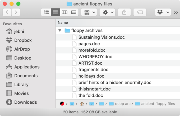 There are folders on my laptop that owe their structure purely to having originated on random old floppy disks that I found in the cupboard. Some of these files are unreadable, despite being Microsoft Word documents. Microsoft are amongst the most slavish followers of backwards-compatibility in the technology industry, even to the extent that they replicate the behaviour of ancient bugs in newer versions of Windows in order for apps to run smoother, but it seems that documents created in versions that predate Word 98 are lost to me. (I’ve learned my lesson: these days, everything’s in plain text Markdown.)