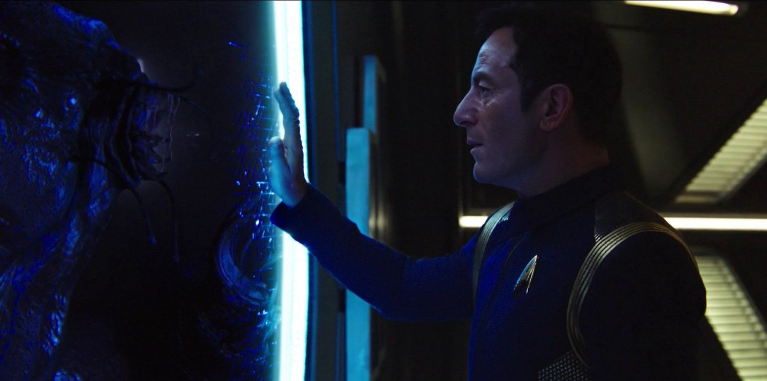 It’s fitting that Lorca is obsessed with fortune cookies. His orientation to the future is all about sublimating his need for military supremacy into predictive certainty. The research he’s co-opted is fantastically creative, but Lorca has subordinated it to the logic of monarchs and generals: he seeks a shortcut to the future in order to stay one step ahead of the Klingons, and develops it in secret like an elite 23rd Century Bond villain. For Lorca, this is who the future belongs to. Indeed, he says (contrary to the need for ethical standards and in favour of the ends justifying the means) that “context is for kings”.