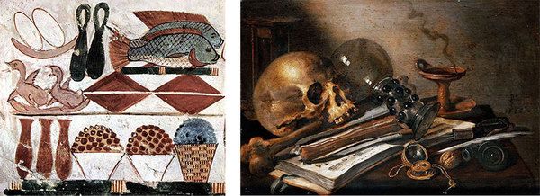 Beyond the idea that our possessions are impermanent, the skulls that haunt Dutch Golden Age paintings show us the hubris of our anthropocentrism: death’s grin slices away our philosophical ownership of the world. It will carry on without us. On the other hand, ancient Egyptian funerary art reminds us that the line between us and not-us is also blurry. Perhaps the ancients knew that we and our culinary delights together formed cyborgs, who deserved integrated burial and representation! (Personally, I want to be buried with my Aeropress and Hario Mini Mill. Because together we form a new being, a Voltron of overthinking.)